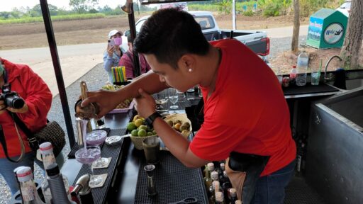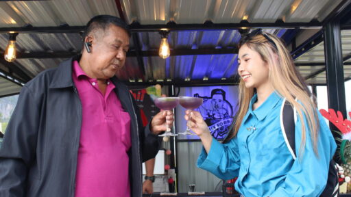 หนุ่มอาชีพบาร์เทนเดอร์ โรงแรมดังที่ภูเก็ต เจอผลกระทบจากโควิด – 19 เดินทางกลับบ้านพบ ต.บ้านมุง อ.เนินมะปราง มีนักท่องเที่ยวไปเยือนเยอะ ตัดสินใจเปิดร้าน MIX SO 89 ฮักดื่ม Coel Cocktail เป็นของตัวเองอยู่ริมทาง มีผู้สนใจแวะดื่มทำให้มีรายได้ดี
