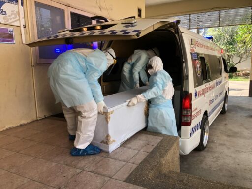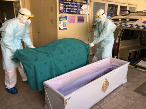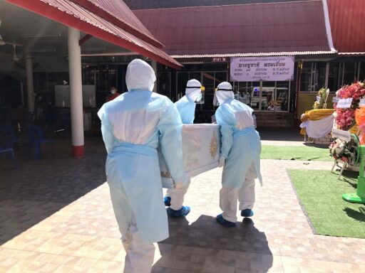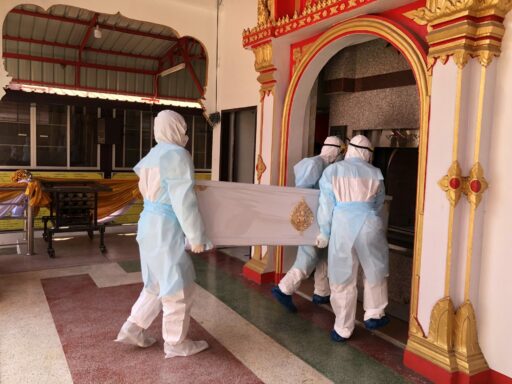 จังหวัดพิษณุโลกติดเชื้อโควิดเสียชีวิตเพิ่มอีก 1 ราย เจ้าหน้าที่หน่วยกู้ภัยพิษณุโลกนำศพไปเผาตามมาตรการของกระทรวงสาธารณสุขที่วัดสระแก้วปทุมทอง ยอดผู้ป่วยรักษาหายออกจากโรงพยาบาล 9,357 ราย รักษาอยู่ในโรงพยาบาล 459 ราย เสียชีวิตสะสมล่าสุด 85 ราย