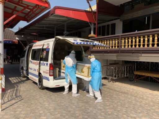 จังหวัดพิษณุโลกติดเชื้อโควิดเสียชีวิตเพิ่มอีก 1 ราย เจ้าหน้าที่หน่วยกู้ภัยพิษณุโลกนำศพไปเผาตามมาตรการของกระทรวงสาธารณสุขที่วัดสระแก้วปทุมทอง ยอดผู้ป่วยรักษาหายออกจากโรงพยาบาล 9,658 ราย รักษาอยู่ในโรงพยาบาล 623 ราย เสียชีวิตสะสมล่าสุด 88 ราย