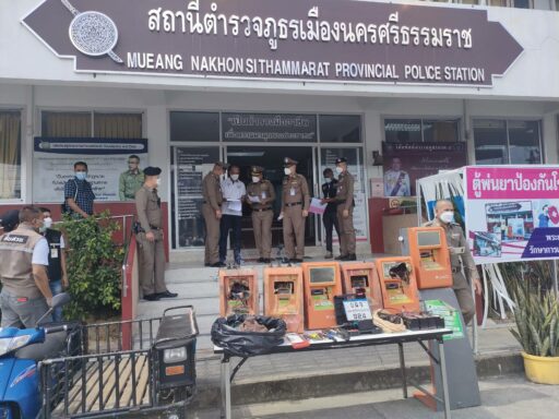 ตำรวจเมืองคอนจับสองผัวเมียลักตู้เติมเงินของกลาง 7 ตู้ หลังตระเวนลัก 4 อำเภอ รับสารภาพนำเงินไปเล่นการพนันออนไลน์และซื้อยาเสพติด