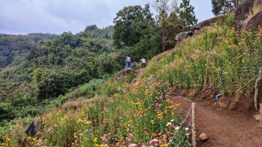 ขณะที่ทุ่งดอกกระดาษบริเวณหน้าก็อยู่ในช่วงจุดพีคบานสวยงามทั้ง 2 แปลง ส่วนดอกนางพญาเสือโคร่งกว่า 20 ต้นบนโครงการฯเริ่มทยอยบานสลับต้นเป็นสีชมพูให้นักท่องเที่ยวได้ชมกันบ้างแล้ว แต่ยังไมาถคงในช่วงจุดพีค คาดว่าอีกประมาณ 1 สัปดาห์จะบานพร้อมกันเป็นสีชมพูไปทั่วโครงการฯ นอกจากนี้ยังมีดอกไม้อื่น ๆ ให้ได้ชมกันอีกอาทิ ดอกกุหลาบพันปี และดอกกล้วยไม้ซิมบิเดียม บานสวยงามส่งกลิ่นหอมอบอวลไปทั่วบริเวณ