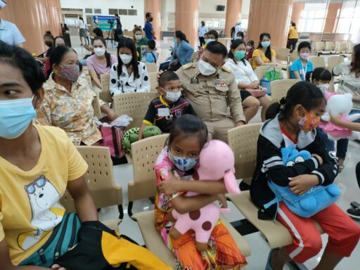เมื่อวันที่ 8 ก.พ.2565 ที่โรงพยาบาลมหาราชนครศรีธรรมราช นายไกรศร วิศิษฎ์วงศ์ ผวจ.นครศรีธรรมราช เดินทางไปตรวจเยี่ยมให้กำลังใจเด็กอายุ5-11ปี ที่ป่วย 7 กลุ่มโรคเรื้อรัง ที่เข้ารับการฉีดวัคซีนไฟเซอร์ เข็มแรก โดยมี นพ.ทรงเกียรติ เล็กตระกูล ผอ.รพ.มหาราชนครศรีธรรมราช และคณะแพทย์พยาบาลให้การต้อนรับและนำตรวจเยี่ยม พบมีผู้ปกครองนำลูกหลานมาเข้ารับการฉีดวัคซีนไฟเซอร์จำนวนมาก นายไกรศร ผวจ.นครศรีธรรมราช จึงมอบตุ๊กตาให้กับเด็ก ๆ ที่กำลังฉีดวัคซีนด้วยบรรยากาศเป็นกันเอง และถ่ายภาพกับบรรดาเด็ก ๆ เพื่อลดความตรึงเครียดที่อาจเกิดขึ้นกับตัวเด็กเองรวมทั้งผู้ปกครอง