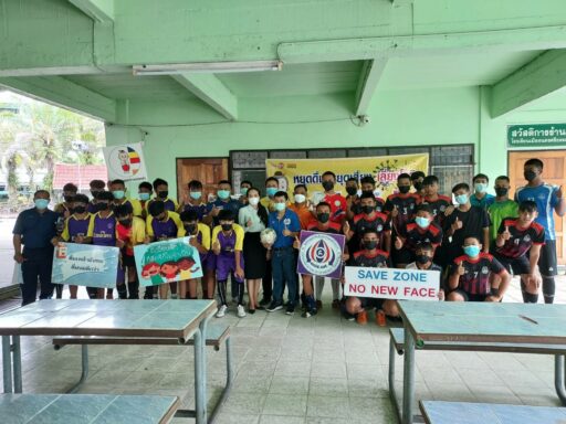 วันที่ 12 กุมภาพันธ์ 2565 ที่สนามฟุตซอล โรงเรียนเมืองนครศรีธรรมราช อ.เมือง จ.นครศรีธรรมราช ศูนย์ควบคุมปัจจัยเสี่ยงจังหวัดนครศรีธรรมราชร่วมกับสำนักงานเครือข่ายองค์กรงดเหล้าภาคใต้ตอนบน และโรงเรียนสังกัดพื้นที่การศึกษามัธยมศึกษานครศรีธรรมราช ร่วมกันจัดกิจกรรม “ คลินิกฟุตบอล SDN นครศรีธรรมราช “ ภายใต้การสนับสนุนสำนักงานกองทุนสนับสนุนการสร้างเสริมสุขภาพ (สสส) มีนายธวัช คำนวณ ผู้อำนวยการโรงเรียนปากพูน สังกัดสำนักงานเขตพื้นที่การศึกษามัธยมศึกษานครศรีธรรมราช เป็นประธานเปิด ซึ่งเป็นไปตามมาตรการฯ ป้องกันโควิด – 19 อย่างเคร่งครัด ก่อนเริ่มกิจกรรม มีการตรวจหาเชื้อไวรัสโควิด – 19 ทุกคน