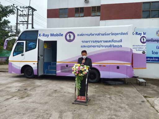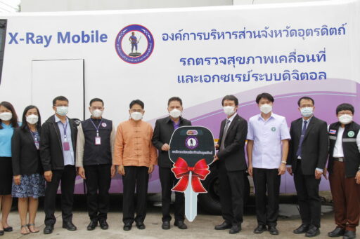 องค์การบริหารส่วนจังหวัดอุตรดิตถ์ ส่งมอบรถเอกซเรย์เคลื่อนที่พร้อมเครื่องเอกซเรย์แบบดิจิตอล สนับสนุน บริการตรวจรักษาใน รพ.สนาม แห่งที่ 3 (สนามกีฬาหมอนไม้)