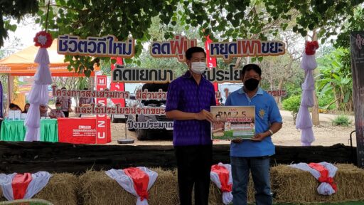สำหรับบรรยากาศในช่วงเช้าแม้จะมีฝนตกเล็กน้อย แต่ผู้คนที่มาร่วมงานต่างคึกคัก ร้อง เล่น เดิน เต้นโชว์ กันอย่างสนุกสนาน ทำให้บรรยากาศในงานเต็มไปด้วยสีสันโดยขบวนผ้าป่าขยะรีไซเคิล เริ่มต้นจากสี่แยกวุ่นวาย แห่ไปจนถึงวัดบ้านคลอง ภายในขบวนมีรถบรรทุกขยะรีไซเคิลหลายคัน และผู้เข้าร่วมขบวนจะแต่งตัวแนวแฟนตาซีด้วยชุดรีไซเคิล มีการออกแบบเครื่องแต่งกายกันอย่างหลากหลาย ไม่ว่าจะเป็นหมวกที่ทำจากกล่องนมและกล่องเครื่องดื่ม ขวดพลาสติก ชุดกระโปงสวย ๆ จากถุงพลาสติก สลากกินแบ่งรัฐบาล กระป๋องเครื่องดื่ม หรือจะเป็นร่มที่ทำจากกระดาษเอกสาร และยังมีหมวกและหน้ากากแฟนตาซีเพิ่มความกิ๊บเก๋ให้กับชุดอีกด้วย รวมทั้งขยะรีไซเคิลอื่น ๆ อีกมากมาย โดยหลังพิธีเปิด ผวจ.พิษณุโลก ได้มอบป้ายรณรงค์หยุดเผาให้กับกำนัน ผู้ใหญ่บ้าน และประธานหมู่บ้าน เพื่อเป็นการส่งเสริมให้ประชาชนตระหนักถึงการป้องกันลดฝุ่น หยุดเผาขยะ เป็นการลดมลพิษทางอากาศและฝุ่น PM 2.5