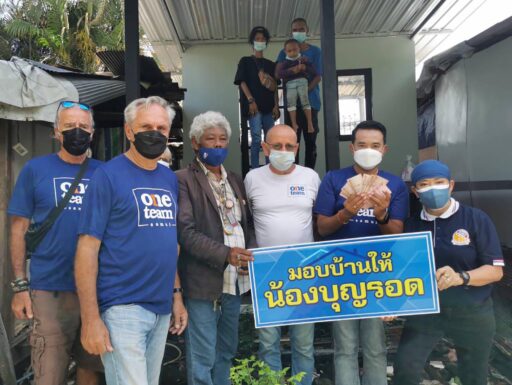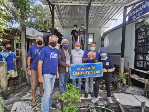 วันที่ 19 ก.พ.2565 ที่ริมถนนในซอยอินนิน ถนนพัฒนาการคูขวาง อ.เมือง จ.นครศรีธรรมราช นางอัมพาพันธ์ นิลประภา หรือ ”เจ้จ๋า” เจ้าของกิจการห้างผ้าโชคดี ถนนชมภูพล ต.ท่าวัง อ.เมือง จ.นครศรีธรรมราช นายไพฑูรย์ อินทศิลา สื่อมวลชนอาวุโส พร้อมคณะ นายทามาส โรแบร์ด อาร์พัด กรูเบอร์ อายุ 61 ปี สัญชาติเยอรมัน หรือชาวสมุย เรียกว่า “ลุงเเซม” นักธุรกิจชาวเยอรมันที่เข้ามาทำธุรกิจอยู่ที่เกาะสมุย จ.สุราษฎร์ธานี และที่ปรึกษาสถานฑูตเยอรมันประจำประเทศไทย ได้ร่วมกันมอบบ้านให้ครอบครัวน้องบุญรอด หนูน้อย วัย 3 ขวบที่มีแม่คือ น.ส.ฐิติกานต์ เยียดพล หรือฝน อายุ 27 ปีพิการตาบอด 1 ข้าง หูหนวก 1 ข้าง และมีความบกพร่องทางสมอง ร่างกายเล็กลีบผิดปกติ สามีมีอาชีพเก็บของเก่าขาย อาศัยอยู่ในเพิงพะกริมถนนในซอยอินนิน ถนนพัฒนาการคูขวาง (33) ต.คลัง อ.เมือง จ.นครศรีธรรมราช