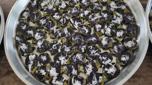 ‘ขนมดอกดิน’ เมนูของหวาน ชื่อแปลกซึ่งถ้าดูจากสี อาจจะไม่ชวนให้ลิ้มลอง เพราะเมื่อนำขนมไปนึ่งแล้ว จะออกเป็นสีน้ำเงิน จนออกดำ แต่รสชาติอร่อย และเหนียวหนึบ แถมยังหอมกลิ่นอ่อน ๆ ของดอกดินอีกด้วย ปกติจะมีโอกาสได้ลิ้มลองกันปีละครั้งในช่วงเดือนกันยายนถึงตุลาคม เนื่องจากดอกดินนั้นหาได้ยากและจะขึ้นในป่าเขาเท่านั้น แต่ที่เมืองสองแคว จ.พิษณุโลก มีให้ได้ทานกันตลอดปีแล้ว