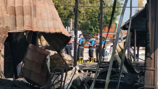 ตำรวจกลุ่มงานตรวจสถานที่เกิดเหตุ ศูนย์พิสูจน์หลักฐาน 6 ลงพื้นที่ตรวจสอบหาสาเหตุของการเกิดเพลิงไหม้อาคารหอศิลปวัฒนธรรมนิทัศน์ โรงเรียนจ่าการบุญ เบื้องต้นคาดกระแสไฟฟ้าลัดวงจร
