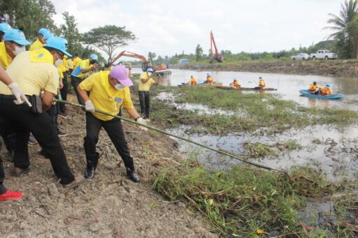 จังหวัดนครศรีธรรมราช จัดกิจกรรมจิตอาสาพัฒนาในโอกาสวันสำคัญของชาติไทย วันที่ระลึกพระบาทสมเด็จพระพุทธเลิศหล้านภาลัย 24 กุมภาพันธ์ 2565 “ขุดลอกคลองซักน้ำสาย 1” เพื่อเพิ่มศักยภาพรับมือภัยแล้ง ปี พ.ศ. 2565