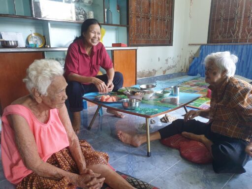 วันที่ 2 มี.ค. ผู้สื่อข่าวรายงานมาว่า ที่บ้านนางส้มนวล นางนวล อายุ 99 ปี เลขที่ 19 หมู่ 3 ต.ท่าซัก อ.เมือง จ.นครศรีธรรมราช ลูก ๆ หลาน ๆ ได้เดินทางไปเยี่ยมคุณทวดส้มนวล และ น.ส.จำเนียร นางนวล หรือ “ป้าเนียร” อายุ 78 ปี บุตรสาวคุณทวดส้มนวล ซึ่งทั้งสองป่วยเป็นโรคชราและอัมพฤกษ์แต่ยังจำลูกหลานที่ใกล้ชิดได้ ยกเว้นลูกหลานที่อยู่ห่างไกลนาน ๆ จะมาเยี่ยมสักครั้ง โดยคุณทวดส้มนวลและป้าเนียร จะมีอารมณ์ดี ยิ้มแย้มแจ่มใส พูดจา ทักทายให้พรลูกหลานตลอด เนื่องจากได้รับการดูแลจากลูกหลานอย่างใกล้ชิดและอบอุ่น โดยเฉพาะคุณทวดส้มนวล จะโชว์บทสวดต่าง ๆ ของศาสนาพุทธได้อย่างคล่องแคล่ว และเล่าเรื่องราวในอดีตตั้งแต่สมัยเด็ก ๆ ได้อย่างแม่นยำ ซึ่งบรรดาลูกหลานที่เดินทางไปเยี่ยมจะพูดคุยอยู่ห่าง ๆ ด้วยเสียงค่อนข้างดัง เนื่องจากคุณทวดส้มนวล อยู่ในวัยชรามาก ทำให้หูหนักกว่าคนปกติ หากพูดค่อย ๆ จะไม่ค่อยได้ยิน ในขณะที่สายตาก็พร่ามัวมองเห็นไม่ค่อยชัด