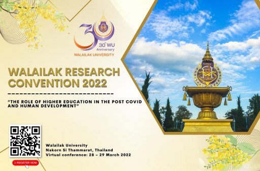 วันที่ 17 มี.ค.2565 รองศาสตราจารย์ ดร.ทนงศักดิ์ อิ่มใจ รักษาการแทนผู้อำนวยการสถาบันวิจัยและนวัตกรรม ม.วลัยลักษณ์ (มวล.) เปิดเผยว่า มหาวิทยาลัยวลัยลักษณ์ โดยสถาบันวิจัยและนวัตกรรม เตรียมจัดการประชุมวิชาการระดับนานาชาติมหาวิทยาลัยวลัยลักษณ์ “Walailak Research Convention 2022” ครั้งที่ 1 เนื่องในโอกาสครบปีที่ 30 แห่งการสถาปนามหาวิทยาลัยวลัยลักษณ์ ภายใต้แนวคิด : “The Role of Higher Education in the Post Covid and Human Development” เพื่อเป็นเวทีในการนำเสนอผลงานวิชาการและแลกเปลี่ยนความรู้ ประสบการณ์ระหว่างนักวิจัยทั้งในประเทศและต่างประเทศ พัฒนาต่อยอดงานวิจัย และกระตุ้นให้เกิดการพัฒนางานวิจัยที่เข้มแข็ง มั่นคง มั่งคั่งและยั่งยืน ตอบสนองความต้องการของสังคมอย่างแท้จริง มีกำหนดจัดขึ้นระหว่างวันที่ 28 – 29 มีนาคม 2565 นี้ ณ มหาวิทยาลัยวลัยลักษณ์