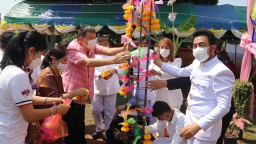 ทังนี้ มีพระสงฆ์ 10 รูป นำโดย 1.พระครูพระครูวรดิตถ์คณารักษ์ เจ้าคณะอำเภอฟากท่า เจ้าอาวาสวัดกกต้อง 2.เจ้าคณะตำบลสองคอน 3.เจ้าคณะตำบลฟากท่า,4. เจ้าคณะตำบลบ้านเสี้ยว, 5.เจ้าคณะตำบลสองห้อง, 6.พระครูอมรธรรมนิวิฐ เจ้าอาวาสวัดห้วยไข่เขียด, 7.พระใบฏีกาพรสุริยะ อนาลโย ผู้ช่วยเลขารองเจ้าคณะจังหวัดอุตรดิตถ์ 8.พระสุนีย์ สมฺจิตโต รักษาการวัดบ้านเดิ่น, 9.พระชาญยุทธ ขนฺติกโร รักษาการวัดมหาธาตุ 10.พระสายัตต์ วรปญฺโญ วัดห้วยไข่เขียด เจริญพระพุทธมนต์และสวดชัยมงคลคาถา เพื่อความเป็นศิริมงคลในการประกอบพิธีครั้งนี้