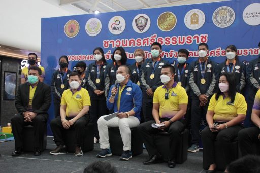 เมื่อวันที่ 9เมษายน 2565 ที่ชั้น 3 ศูนย์การค้าเซ็นทรัลพลาซา นครศรีธรรมราช นายไตรรัตน์ ไชยรัตน์ รอง ผวจ.นครศรีธรรมราช พร้อมด้วย ว่าที่ ร.ท.ยุทธการ รัตนมาศ นายกสมาคมกีฬาจังหวัดนครศรีธรรมราช, นายยงยศ แก้วเขียว นายกสมาคมกำนันผู้ใหญ่บ้านแห่งประเทศไทย, นายประยูร เงินพรหม ประธานหอการค้า จ.นครศรีธรรมราช, นายพยงค์ สงวนถ้อย นายกเทศมนตรีตำบลนาสาร ในฐานะประธาน กก.สันนิบาตเทศบาล จ.นครศรีธรรมราช ศึกษาธิการจังหวัดและ สนง.กกท.นครศรีธรรมราช ร่วมทั้งภาคีเครือข่ายทุกภาคส่วน ร่วมแถลงข่าวเปิดตัวและแสดงความยินดีกับทัพนักกีฬาที่คว้าเหรียญรางวัลทุกประเภท จากการแข่งขันกีฬาแห่งชาติครั้งที่ 47 ประสบความสำเร็จสูงสุดในรอบ 15 ปี ในการแข่งขันกีฬาแห่งชาติ “ศรีสะเกษเกมส์”