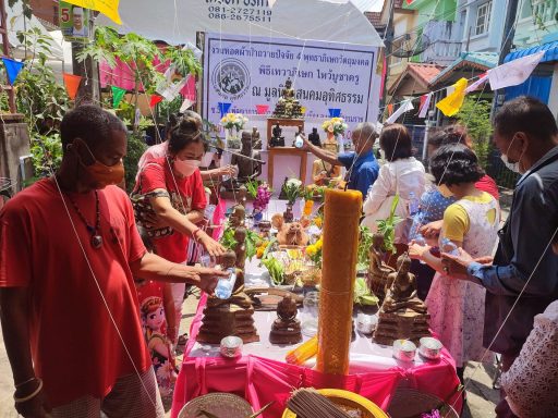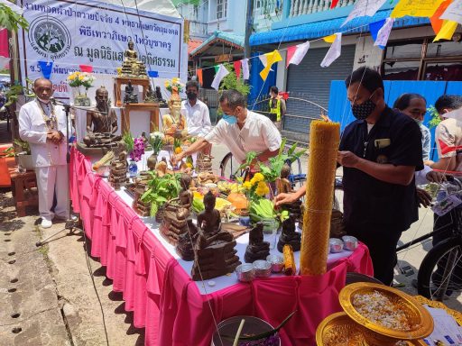 ผู้สื่อข่าวรายงานว่า ที่มูลนิธแสนคมอุทิศธรรม ถนนพัฒนาการคูขวาง ต.ในเมือง อ.เมือง จ.นครศรีธรรมราช คณะกรรมการมูลนิธิฯ จัดกิจกรรมวันสงกรานต์ สรงน้ำพระพุทธสิหิงส์ เนื่องในเทศกาลสงกรานต์ 2565 มีประชาชนเข้าร่วม ภายใต้มาตรการป้องกันและควบคุมการแพร่ระบาดของโควิด -19 อย่างเคร่งครัด สำหรับกิจกรรมประกอบด้วยพิธีเทวาภิเษก พุทธาภิเษก ไหว้บูชาครู บวงสรวงสิ่งศักดิ์สิทธิ์ และสวดเจริญพระพุทธมนต์ บริกรรมคาถา สวดปัดเป่าสิ่งชั่วร้าย โดยเฉพาะโรคร้ายไวรัสโควิด – 19 รวมทั้งสวดเสริมดวง เพิ่มพลัง เพื่อความเป็นสิริมงคล ป้องกันโรคภัยให้แก่ผู้ที่เข้าร่วมพิธี รวมทั้งคนไทยทั้งประเทศ ให้รอดพ้นจากโรคไวรัสโควิด -19 ตามความเชื่อ หลังเสร็จสิ้นพิธี ผู้เข้าร่วมพิธีร่วมกันสรงน้ำพระพุทธสิหิงค์ ตามประเพณีวันปีใหม่ไทย รวมทั้งรับน้ำมนต์ศักดิ์สิทธิจากบ่อพ่อท่านคล้าย เพื่อปลุกเสกปัดเป่าโรคร้าย และถุงยังชีพ ซึ่งเป็นยาสมุนไพรชนิดต่างๆ สำหรับต้านโรคไวรัสโควิด – 19 โดยเฉพาะฟ้าทะลายโจร ซึ่งทางมูลนิธิฯ ผลิตแจกจ่ายผู้เข่าร่วมงาน