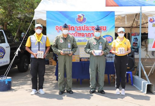 ผู้บังคับการกองบิน 46 และประธานชมรมแม่บ้านทหารอากาศ กองบิน 46 ตรวจเยี่ยมจุดบริการประชาชน ช่วงเทศกาลสงกรานต์ ประจำปี 2565 กองบิน 46 พร้อมมอบน้ำดื่ม ชุดยาสามัญประจำบ้าน สเปย์แอลกอฮอล์ ให้ประชาชนที่เดินทางสัญจรฟรี
