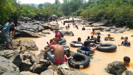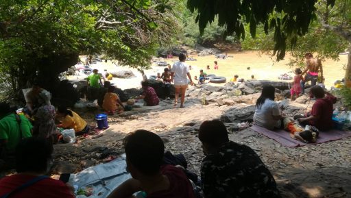พิษณุโลกครอบครัวพาบุตรหลานมาเล่นน้ำตกคลายร้อนในวันสงกรานต์แทนการสาดน้ำในเมืองกันอย่างเนืองแน่น ภายใต้มาตรการควบคุม covid-19