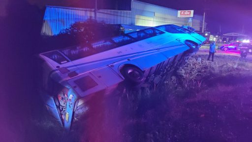 รถทัวร์เสียหลักตกถนนผู้โดยสารเจ็บ 10 ราย