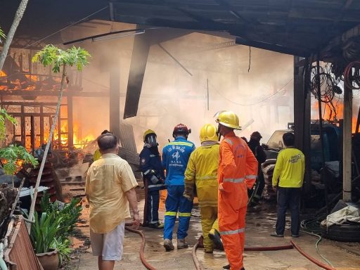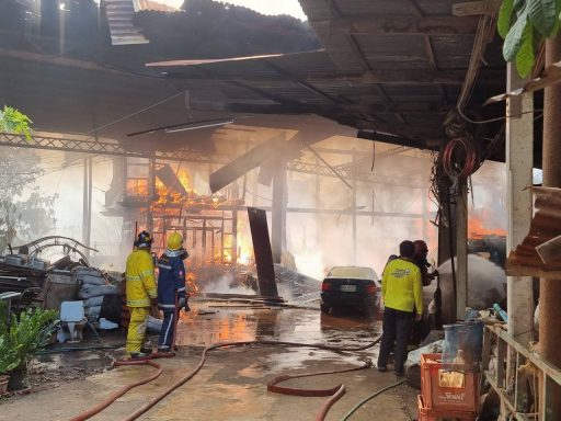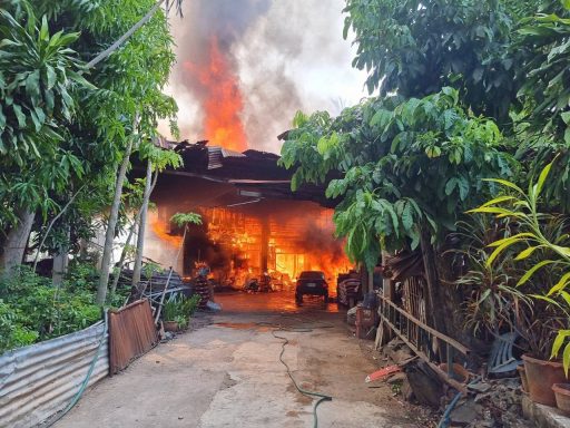 เกิดเหตุไฟไหม้โกดังเก็บไม้เก่าลุกลามไหม้บ้านพัก รถยนต์ 4 คัน เสียหายทั้งหมด เจ้าของบ้านเร่งช่วยเหลือแม่ที่อยู่ในบ้านออกมาได้หวุดหวิด คาดมูลค่าความเสียหายไม่ต่ำกว่า 10 ล้านบาท