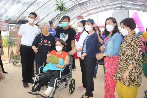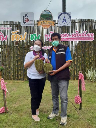 โดยหลังพิธีเปิด นายรณชัย จิตรวิเศษ ผวจ.พิษณุโลก พร้อมด้วย นายกเหล่ากาชาดจังหวัดพิษณุโลก ประธานสภาอุตสาหกรรมท่องเที่ยวจังหวัดพิษณุโลก และภาคีเครือข่าย ได้เยี่ยมชมสวนทุเรียนที่ปลูกไว้กว่า 2,000 ไร่ และชมการตัดทุเรียนจากต้นลงสู่พื้นเพื่อนำไปจำหน่ายให้ลูกค้า ทั้งทางออนไลน์และโทรศัพท์สั่งซื้อกับสวนโดยตรง โดยจัดส่งทางไปรษณีย์ที่มาให้บริการรับจากสวนก่อนนำไปส่งให้กับลูกค้าทั่วประเทศ โดยผู้ว่าราชการจังหวัดพิษณุโลกได้ร่วมทดสอบการรับทุเรียนจากต้นด้วย โดยลีลาการรับทุเรียนของผู้ว่าราชการจังหวัดพิษณุโลก ต้องใช้การทดสอบถึง 3 ครั้งก่อนจะสามารถรับทุเรียนได้ เหมือนกับคนงานทั่วไปทีเดียว ท่ามกลางเสียงหัวเราะของผู้มาร่วมงาน