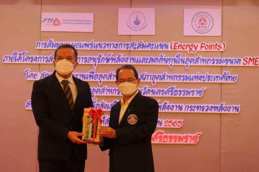 วันที่ 9 มิถุนายน 2565 ที่ห้องอรพินท์ โรงแรมทวินโลตัส จังหวัดนครศรีธรรมราช นายไตรรัตน์ ไชยรัตน์ รองผู้ว่าราชการจังหวัดนครศรีธรรมราช เป็นประธานพิธีเปิดการสัมมนาเผยแพร่แนวทางการสะสมคะแนน Energy points ภายใต้โครงการสนับสนุนการอนุรักษ์พลังงานและลดต้นทุนในอุตสาหกรรมขนาด SME หรือ Energy Points 3 กลุ่มจังหวัดภาคใต้ฝั่งอ่าวไทย (นครศรีธรรมราช สุราษฎร์ธานี ชุมพร พัทลุง) โดยมีนายสุรเชษฐ์ หรดี พลังงานจังหวัดนครศรีธรรมราช, นายกันตพิชญ์ ประดับการ สวัสดิการและคุ้มครองแรงงานจังหวัดนครศรีธรรมราช, นางจิรา วงศ์สวัสดิ์ ประชาสัมพันธ์จังหวัดนครศรีธรรมราช, นายณรงค์ บัณฑิตกมล รองประธานคณะทำงานโครงการฯ,นายรุ่งเรือง สายพวรรณ์ ผู้อำนวยการสถาบันพลังงานเพื่ออุตสาหกรรม สภาอุตสาหกรรมแห่งประเทศไทย, นายยุทธกิจ มานะจิตต์ ประธานอาวุโส สภาอุตสาหกรรมจังหวัดนครศรีธรรมราช พร้อมด้วยผู้บริหารจากหน่วยงานภาครัฐ ภาคเอกชนร่วมในพิธี