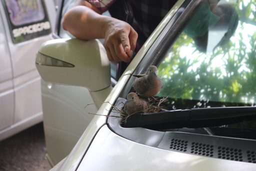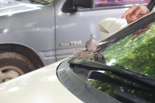 นกเขาคู่รักสร้างรังเตรียมฮันนีมูนหน้ารถคนพบเห็นแห่ตีเลขเสี่ยงโชค