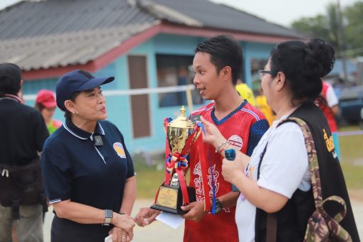 “แม่จ๋า “ เศรษฐีใจบุญเจ้าของห้างผ้าโชคดีเมืองคอน สนับสนุนกีฬาชุมชน สร้างสนามกีฬา มอบเงินรางวัล 1 หมื่น