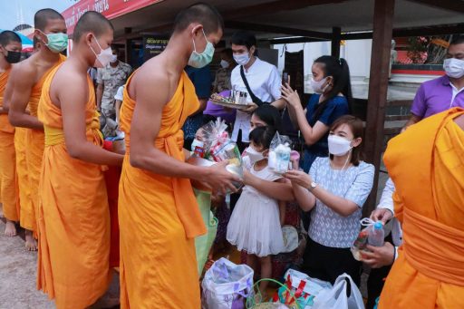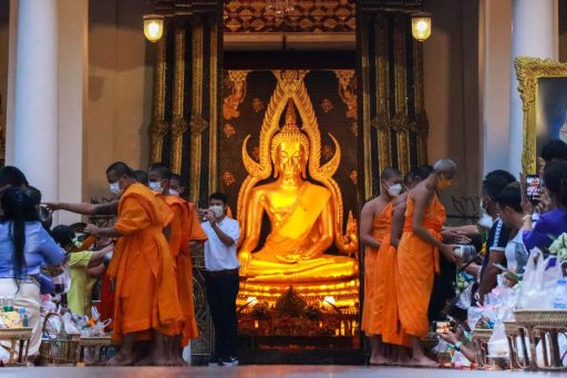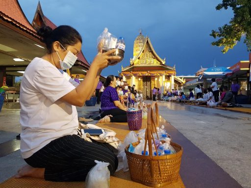 ตักบาตรรับอรุณหน้าวิหารหลวงพ่อพระพุทธชินราช