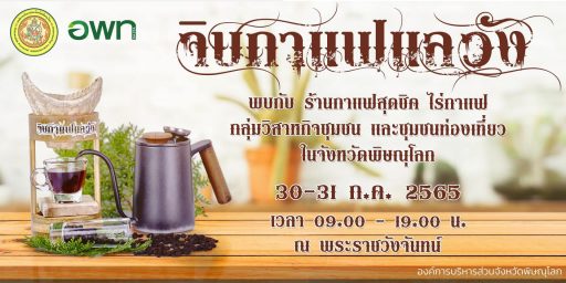 องค์การบริหารส่วนจังหวัดพิษณุโลกเชิญชวนชาวพิษณุโลก นักท่องเที่ยวและคอกาแฟ เที่ยวงาน “จิบกาแฟแลวัง พุทธศักราช 2565” ระหว่างวันที่ 30 – 31 กรกฎาคมนี้ ที่พระราชวังจันทน์
