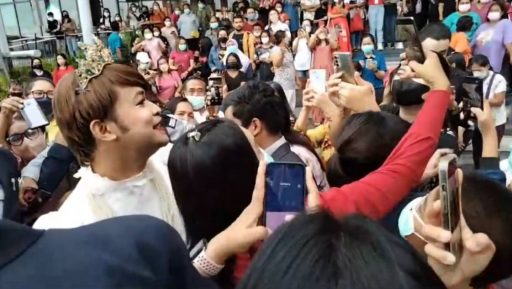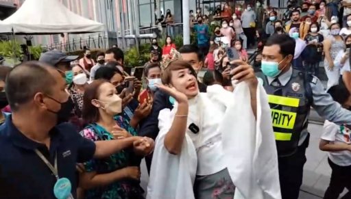 ผู้สื่อข่าวรายงานบรรยากาศก่อนเริ่มการแถลงข่าวมิสแกรนด์นครศรีธรรมราช อย่างเป็นทางการ มีชาวจังหวัดนครศรีธรรมราชหลายร้อยคน แห่ต้อนรับ “จุรี” คนดังโซเชียล กันจนแน่นขนัน ซึ่งเมื่อ “จุรี” คนดังโซเชี่ยล ปรากฏตัวบริเวณทางเข้างาน ชาวนครศรีธรรมราช ที่มารอต้อนรับ “จุรี” กรูเข้าขอถ่ายภาพเซลฟี่กับ “จุรี” โดย “จุรี” ร่วมถ่ายรูปด้วยความเป็นกันเอง