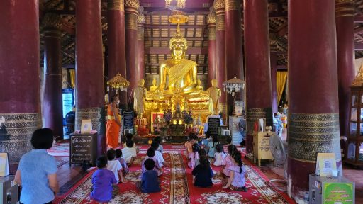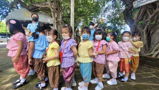 สีสันเด็กอนุบาลแต่งชุดไทยเข้าวัดซึมซับพระพุทธศาสนา