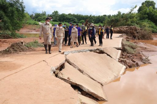 ช่วยเหลือชาวบ้านเร่งแก้ไขสะพานที่ถูกน้ำป่าซัดพังเสียหาย