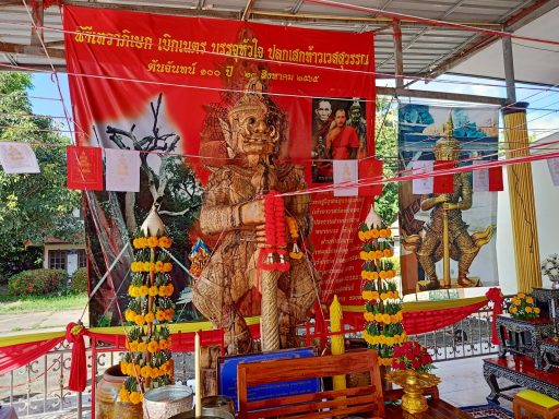 จัดพิธีเทวาภิเษก เบิกเนตร บรรจุหัวใจ ปลุกเสกวัตถุมงคล ท้าวเวสสุวรรณ (แกะจากต้นจันทร์ อายุกว่า 100 ปี คู่บารมีหลวงปู่ทองดำ ฐิตวัณโณ วัดท่าทอง) หนึ่งเดียวในโลก