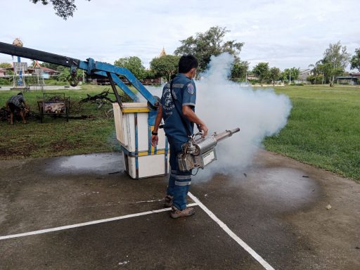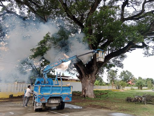 ทำได้ทุกอย่างเพื่อประชาชน เจ้าหน้าที่หน่วยกู้ภัยพิษณุโลก พ่นหมอกควันก่อนกำจัดรังแตนโดยประสานความร่วมมือกับองค์การบริหารส่วนตำบลบึงกอก ให้กับโรงเรียนบ้านปรือกระเทียม เพื่อความปลอดภัยสำหรับครู นักเรียน และผู้ปกครอง