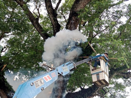 ร้องขอหน่วยกู้ภัยกำจัดรังแตนนับพันรังบนต้นฉำฉา