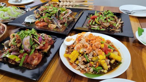 เมนูส้มตำ เริ่มต้นที่ 40 บาทเท่านั้น แต่หากใครไม่ทานส้มตำเราก็ยังมีก๋วยเตี๋ยวเรือกัญชา มีทั้งเมนูเนื้อตุ๋น หมูตุ๋น เมนูหม้อไฟ เมนูลวกจิ้ม ก๋วยเตี๋ยวเรือเริ่มต้นที่ราคาชามละ 15 บาท (เป็นชามเล็ก) และสูงสุดชามละ 50 บาท ส่วนเมนูหม้อไฟเป็นเมนูที่ขายดีมากเพราะทางเราให้เยอะ หม้อไฟหมู หม้อไฟเนื้อ ก็มีเนื้อฉ่ำ ๆ แบบจุใจ หม้อไฟหมูราคา 80 บาท หม้อไฟเนื้อราคา 100 บาท สามารถทานได้ 2 – 3 คน ทุกเมนูเราปรุงด้วยวัตถุดิบที่สดใหม่ มั่นใจเรื่องความสะอาดได้เลย และปรุงชามต่อชามตามสูตรชองครอบครัวตน รับรองว่าทุกชามรสชาติไม่เพี้ยน และอร่อยได้โดยแทบจะไม่ต้องปรุงเพิ่มเลย และอย่าลืมตบท้ายดับร้อนความแซ่บจัดจ้านของเมนูอาหารคาว ด้วยเมนูน้ำแข็งใสบุฟเฟ่ต์ ลูกค้าตักเองใส่เครื่องได้ตามชอบแบบไม่อั้น ทั้งถั่วแดง รากบัวเชื่อม วุ้นมะพร้าว มันเชื่อม เพียงถ้วยละ 20 บาท จะตักเท่าไหร่ก็ได้ นอกจากนี้ทางร้านยังมีบริการห้องจัดเลี้ยง เป็นห้องแอร์ บรรจุคนได้ประมาณ 40 คน มีคาราโอเกะพร้อม ทางร้านไม่คิดค่าห้องเพิ่มเพียงสั่งอาหารของทางร้านเท่านั้น แต่ต้องสั่งจองล่วงหน้า