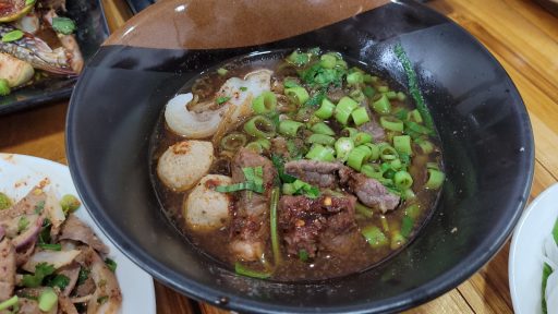นางสมถวิล กล่าวต่อว่าว่าวันนี้เปิดร้านวันแรกประชาสัมพันธ์ทางเพจ ชิมเตี๋ยวตำ ของทางร้าน ปลื้มใจมากเพราะลูกค้าขาประจำพากันมาชิมจนโต๊ะเต็มตลอดทั้งวัน ซึ่งลูกค้าส่วนใหญ่คุ้นเคยกับเมนูก๋วยเตี๋ยวเรือกัญชาของทางร้านกันอยู่แล้ว แต่วันนี้มาชิมเมนู ส้มตำ ยำแซ่บ ๆ ของทางร้าน สำหรับเมนูซิกเนเจอร์ของร้าน คือ ตำรวมยกทะเล – ปลาร้า ใน 1 จานจะมีทั้ง ปูม้า ปลาหมึก กุ้ง หอยแครง หอยนางรม และแซลม่อน ปรุงรสด้วยน้ำปลาร้าสูตรเด็ดของร้าน เน้นรสชาติจัดจ้าน และวัตถุดิบสดทุกอย่าง จานนี้ทานได้ 4 คนแบบอิ่ม ๆ ราคาจานละ 350 บาทเท่านั้น นอกจากนี้ยังมีเมนูหลากหลาย อาทิ ตำป่ารวมทะเล ตำไหลบัวรวมทะเล ตำไทยไข่เค็ม กุ้งแช่น้ำปลา ต้มเล้ง ต้มซุปเปอร์ขาไก่ และเมนูอื่น ๆ อีกนับ 100 เมนู ราคาเทียบกับปริมาณรับรองว่ามิตรภาพมาก