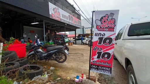 ร้านอิ่มหลาย แกง 10 บาท เริ่มเปิดขายเมื่อวันที่ 5 กันยายน 2565 มี นายฤทธิรงค์ ทองคำ อายุ 40 ปี และ นางสาวอรวรรณ กลิ่นหอม อายุ 25 ปี สองสามีภรรยาเป็นเจ้าของร้าน ทุกวันมีลูกค้าแวะมาอุดหนุนไม่ขาดสาย เริ่มเปิดร้านตั้งแต่เวลา 06.00 น. – 19.00 น. บรรยากาศเช้านี้ทั้งคนทำงาน ประชาชนทั่วไป นักศึกษา มาสั่งข้าวกินเนืองแน่น โดยทางร้านจะตักกับข้าวใส่ถ้วยวางไว้บนโต๊ะ ให้ลูกค้าได้หยิบเอง และให้ลูกค้าตักข้าวและน้ำดื่มด้วยตนเอง ราคากับข้าวถ้วยละ 10 บาท ราคาข้าวเปล่าจานละ 10 บาท น้ำดื่มฟรี ข้าวจานต่อไปตักได้ไม่อั้น นอกจากนี้ ยังมีขนมหวานที่เพื่อนเจ้าของร้านทำมาขายสด ๆ ทุกวัน ราคาไม่แพง ชิ้นละ 10-13 บาท ส่วนกับข้าวใส่ถุงทางร้านคิดถุงละ 15 – 20 บาท