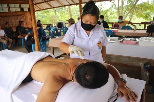 นางสุทเทียน สงศีลวัฒน์ อายุ 64 ปี หมอฝังเข็มปราชญ์ชาวบ้านบ้านน้ำจวง กล่าวว่า ตนเองเรียนรู้การฝังเข็มเพื่อรักษาสุขภาพมาตั้งแต่อายุ 13 ปี ด้วยการครูพักลักจำจากหมอฝังเข็มในหมู่บ้าน จนกระทั่งอายุ 64 ปี ก็ยังคอยฝังเข็มรักษาให้กับคนในหมู่บ้าน แต่ล่าสุดหลังจากผ่านการอบรมของสำนักงานสาธารณสุขจังหวัดพิษณุโลก ทำให้นักท่องเที่ยวที่มาเที่ยวในหมู่บ้าน เริ่มหันมาฝังเข็มกับตนเองมากขึ้น โดยเฉพาะผู้ที่นอนไม่ค่อยหลับ ผู้ที่ปวดเมื่อยตามร่างกาย ผู้ที่เป็นโรคออฟฟิตซินโดรม ก็มาฝังเข็มกัน ผลปรากฏว่าหลังจากผ่านการฝังเข็มทุกคนมีสุขภาพร่างกายดีขึ้น สำหรับการฝังเข็มของชาวบ้านบ้านน้ำจวง ถือว่าเป็นภูมิปัญญาของคนในท้องถิ่น ที่สามารถบริการนักท่องเที่ยวควบคู่กับการมาเที่ยวชมแหล่งท่องเที่ยวทางธรรมชาติ วิถีชีวิตชนเผ่า วัฒนธรรมและประเพณีต่าง ๆ ของคนในชุมชนได้อย่างลงตัว นักท่องเที่ยวที่สนใจจะไปเที่ยวชมสอบถามหรือติดต่อจองที่พักแบบโฮมสเตย์ได้กับ นายนิรันดร์ ลีวัฒนะกุล ประธานกลุ่มท่องเที่ยวในชุมชนบ้านน้ำจวงอย่างยั่งยืน โทรศัพท์หมายเลข 063 – 0676100