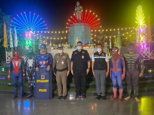 ตำรวจเมืองอุตรดิตถ์ ไอเดียเจ๋ง แต่งชุดอเวนเจอร์ ชุบเปอร์ฮีโร่ พร้อมอาวุธครบมือ ดูแลรักษาความปลอดภัยในงานเทศกาลลางสาด ลองกองหวานและ OTOP อุตรดิตถ์