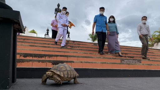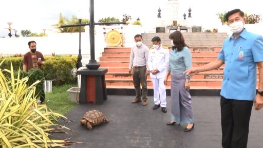 เต่าเดินตัดหน้าผู้ว่าฯ หลังกราบลาพ่อขุนศรีอินทราทิตย์เชื่อให้โชคมีลาภ
