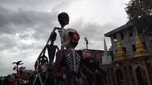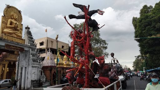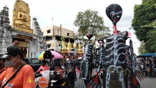 นักเรียนแตกตื่นเกาะรั้วชมขบวนแห่เปรตเดือนสิบ