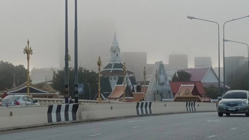 ส่วนที่บ้านบางพะยอม ตำบลหัวรอ อำเภอเมืองพิษณุโลก ที่สะพานแขวนพลายชุมพล สะพานข้ามแม่น้ำน่าน ก็มีสายหมอกหนาปกคลุมเช่นกัน ในวันนี้กรมอุตุนิยมวิทยาพยากรณ์อากาศว่าความกดอากาศสูงจากจีนได้แผ่ปกคลุมลงมาไทยตอนบนส่งผลให้ไทยตอนบนสภาพอากาศเริ่มเย็นลงและฝนลดลง ขณะที่ในช่วงวันที่ 9 – 11 ต.ค. 65 บริเวณความกดอากาศสูงกำลังปานกลางหรือมวลอากาศเย็นจากประเทศจีนอีกระลอกหนึ่ง จะแผ่เสริมลงมาปกคลุมภาคเหนือ ภาคตะวันออกเฉียงเหนือ และทะเลจีนใต้ ทำให้บริเวณดังกล่าวมีฝนตกหนักบางแห่งในระยะแรกกับมีลมแรง และหลังจากนั้นอุณหภูมิจะลดลง เป็นสัญญาณการเริ่มเข้าสู่ฤดูหนาวของไทยในช่วงปลายเดือนตุลาคม