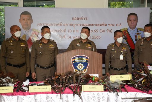 เมื่อเวลา 13.30 น. วันที่ 14 พ.ย.2565 พล.ต.ต.บัณฑิต ตุงคะเศรณี รอง ผบช.ภ.6 เป็นประธานแถลงข่าวผลการระดมกวาดล้างอาชญากรรมและยาเสพติดของตำรวจภูธรภาค 6 ห้วงระหว่างวันที่ 10 ต.ค.- 8 พ.ย.2565 โดยมี พล.ต.ต.พยูห์ ธนะศรีสืบวงศ์ รอง ผบช.ภ.6 และผู้บังคับการตำรวจภูธรจังหวัดในสังกัดร่วมแถลงข่าวด้วย ที่กองบังคับการสืบสวนสอบสวน ตำรวจภูธรภาค 6 ต.ในเมือง อ.เมือง จ.พิษณุโลก พล.ต.ต.บัณฑิต กล่าวว่า ขอให้ประชาชนมั่นใจว่าการประชุม APAC ที่ใกล้จะถึงนี้ ทางตำรวจภูธรภาค 6 มีกำลังพลและความพร้อม 100 เปอร์เซ็นต์ ที่จะเข้าไปร่วมสนับสนุนดูแลความปลอดภัยในชีวิตและทรัพย์ตลอดการประชุม สำหรับการกวาดล้างอาชญากรรมในครั้งนี้ พล.อ.ประยุทธ์ จันทร์โอชา นายกรัฐมนตรี สั่งการให้ตำรวจเร่งรัดปราบปรามความผิดเกี่ยวกับอาวุธปืน อาวุธสงคราม และเครื่องกระสุนปืน ความผิดเกี่ยวกับยาเสพติด และบุคคลตามหมายจับ ให้บังเกิดผลการปฏิบัติอย่างเป็นรูปธรรมและมีประสิทธิภาพ เพื่อให้ประชาชนมีความปลอดภัยในชีวิต ทรัพย์สิน และประเทศชาติมีความสงบเรียบร้อย