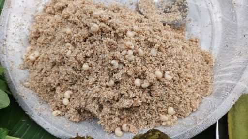 เมื่อเวลา 08.30 น. วันที่ 27 พฤศจิกายน 2565 ผู้สื่อข่าวรายงานมาว่าที่ตลาดใต้ หรือตลาดเทศบาล 1 ต.ในเมือง อ.เมือง จ.พิษณุโลก ตลาดเช้าของคนเมืองสองแคว เช้าวันนี้เริ่มมีพ่อค้าแม่ค้าหลายเจ้านำไข่มดดินมาวางขายแล้ว ในราคาขีดละ 130 บาท หรือ กิโลกรัมละ 1,300 บาท นายนกเล็ก คงมา พ่อค้าขายพืชผักพื้นบ้านชาวตำบลอรัญญิก อ.เมืองพิษณุโลก นักขุดไข่มดดินตัวยงก็นำไข่มดดินมาวางขายเช่นกัน โดยตลอดหน้าหนาว 3 เดือนนี้ ระหว่างเดือนธันวาคมถึงเดือนกุมภาพันธ์ของทุกปี นายนกเล็ก จะออกขุดและนำไข่มดดินมาขายได้เป็นเงินเก็บประมาณ 60,000-70,000 บาท
