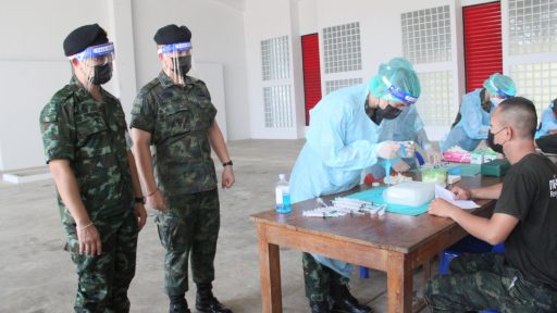 โรงพยาบาลค่ายพิชัยดาบหัก มทบ.35 นำแผนกส่งเสริมสุขภาพและเวชกรรมป้องกัน เพื่อตรวจโรค ฉีดวัคซีนป้องกันไข้หวัดใหญ่ ให้ทหารกองประจำการ ผลัด 2/2565