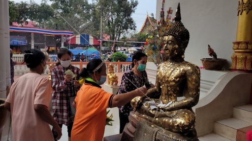 เมื่อเวลา 09.00 น. วันที่ 5 ก.พ.2566 ที่วัดพระขาวชัยสิทธิ์ หมู่ที่ 3 ต.บ้านกร่าง อ.เมือง จ.พิษณุโลก อบต.บ้านกร่าง ได้จัด “งานของดีตำบลบ้านกร่าง” เพื่อส่งเสริม อนุรักษ์ประเพณี ภูมิปัญญาท้องถิ่นของตำบลขึ้น ระหว่างวันที่ 4 – 6 ก.พ.2566 และประชาสัมพันธ์เผยแพร่ของดีตำบลบ้านกร่างรวมทั้งส่งเสริมการท่องเที่ยว เป็นการกระจายรายได้ให้แก่ชุมชน โดยวันนี้ได้มีการประกวดแข่งขันเผาข้าวหลาม ซึ่งเป็นภูมิปัญญาท้องถิ่นของแต่ละหมู่บ้านด้วย นอกเหนือจากการออกร้านแสดงสินค้าผลิตภัณฑ์ของดีของเด่น ต.บ้านกร่าง เช่น เครื่องจักรสาน หมวก กระเป๋า น้ำพริก น้ำปลา (ปลาแท้ชาวบ้านทำเอง) ผ้าทอบ้านกร่าง ใบตองบายศรี ผลิตภัณฑ์น้ำผึ้ง อีกมากมาย จำนวนกว่า 50 บู๊ท ซึ่งประชาชนที่ไปเที่ยวชมงานต่างพากันไปกราบไหว้สักการะปิดทององค์หลวงพ่อขาวไชยสิทธิ์ที่อยู่บริเวณด้านหน้าพระอุโบสถของวัด และเข้าไปกราบไหว้พระพุทธรูปปางมารวิชัยที่เป็นพระประธานภายในอุโบสถ เพื่อเป็นสิริมงคลต่อตนเองและครอบครัวด้วย