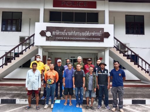 ตำรวจน้ำขนอม และเจ้าหน้าที่ ปภ.เทศบาลตำบลขนอมช่วย 5 ชาวประมง หลังประสบเหตุเรือประมงพื้นบ้านอับปาง เหตุมีคลื่นลมแรงจนพลิกคว่ำจนเรือแตกกลางอ่าวไทย โชคดีรอดปลอดภัยทุกคน