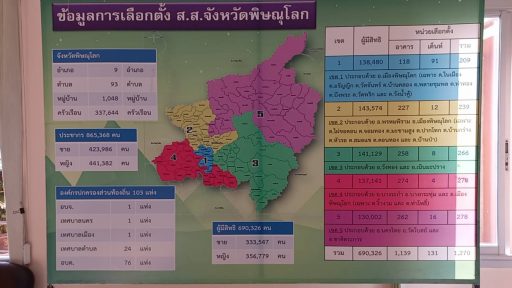 สำหรับผู้ที่เดินทางมายื่นหนังสือในครั้งนี้ เห็นชอบการแบ่งเขตการเลือกตั้งรูปแบบที่ 1 ซึ่งเป็นการแบ่งเขตเลือกตั้งแบบเดิมเมื่อสมัยที่ผ่านมา คือ เขตเลือกตั้งที่ 1 ประกอบไปด้วย อ.เมืองพิษณุโลก เฉพาะ ต.ในเมือง ต.อรัญญิก ต.วัดจันทร์ ต.บ้านคลอง ต.พลายชุมพล ต.ท่าทอง ต.บึงพระ ต.วัดพริก ต.วังน้ำคู้ ,เขตเลือกตั้งที่ 2 ประกอบไปด้วย อ.พรหมพิราม อำอ.เมืองพิษณุโลก เฉพาะ ต.ไผ่ขอดอน ต.จอมทอง ต.มะขามสูง ต.ปากโทก ต.บ้านกร่าง ต.หัวรอ ต.สมอแข ต.ดอนทอง และ ต.บ้านป่า เขตเลือกตั้งที่ 3 ประกอบไปด้วย อ.วังทอง และ อ.เนินมะปราง เขตเลือกตั้งที่ 4 ประกอบไปด้วย อ.บางระกำ อ.บางกระทุ่ม อ.เมืองพิษณุโลก เฉพาะ ต.งิ้วงาม ต.ท่าโพธิ์ และเขตเลือกตั้งที่ 5 ประกอบไปด้วย อ.นครไทย อ.วัดโบสถ์ และ อ.ชาติตระการ ซึ่งทาง กกต.พิษณุโลก จะรวบรวมข้อเสนอแนะทั้งเอกสารต่าง ๆ ทั้งหมดจากทุกคนทุกฝ่าย ส่งไปทาง กกต.ในการพิจารณาต่อไป คาดว่าภายในสิ้นเดือนนี้ก็จะเสร็จสิ้นและประกาศเขตเลือกตั้งได้