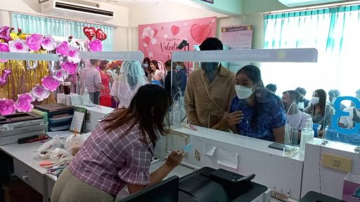 คู่รักจับบัตรคิวแต่เช้าจดทะเบียนสมรสวันแห่งความรักคึกคัก