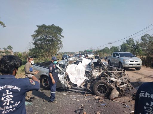 รถกระบะชนประสานงารถสิบล้อตาย 3 สาหัส 1